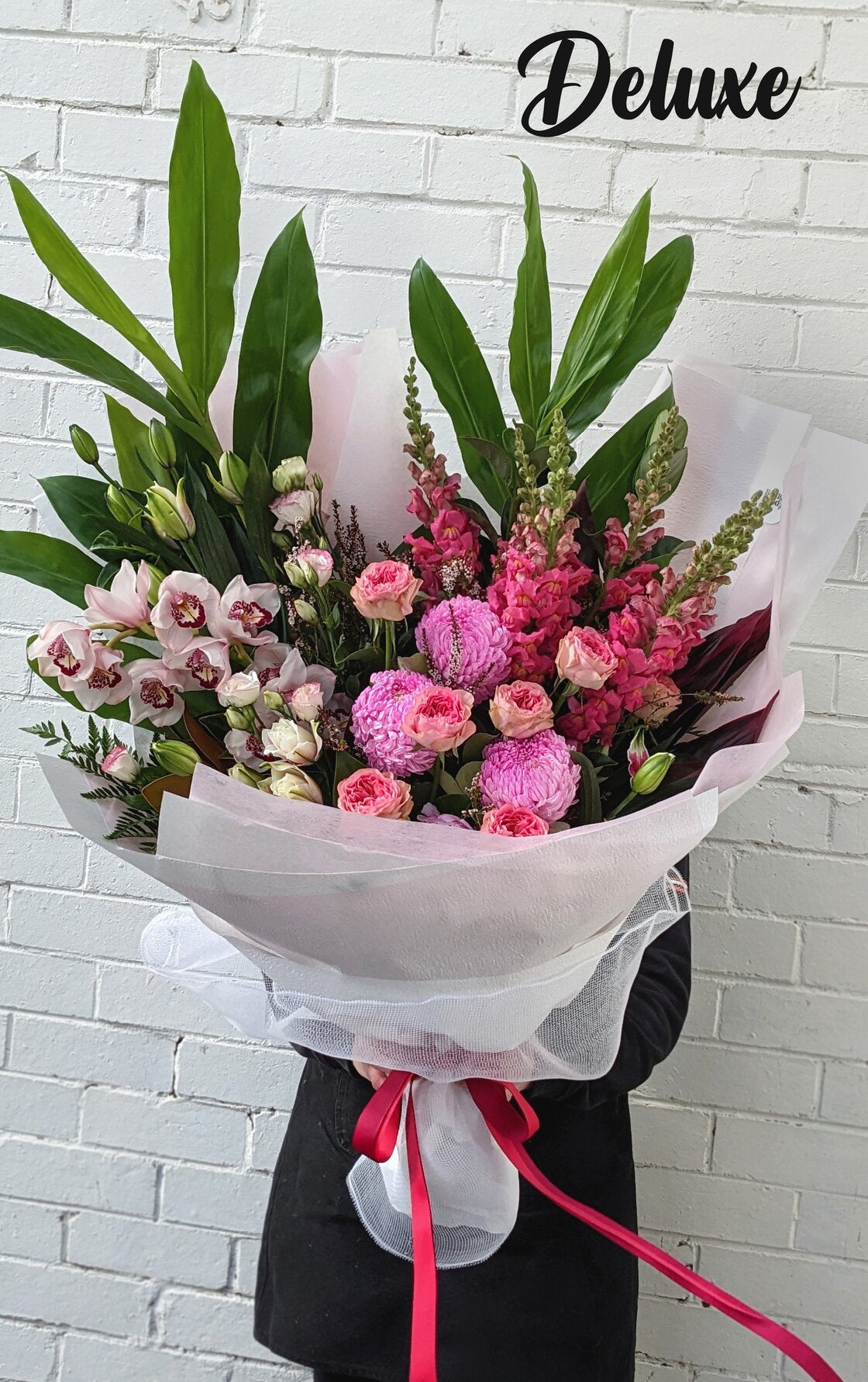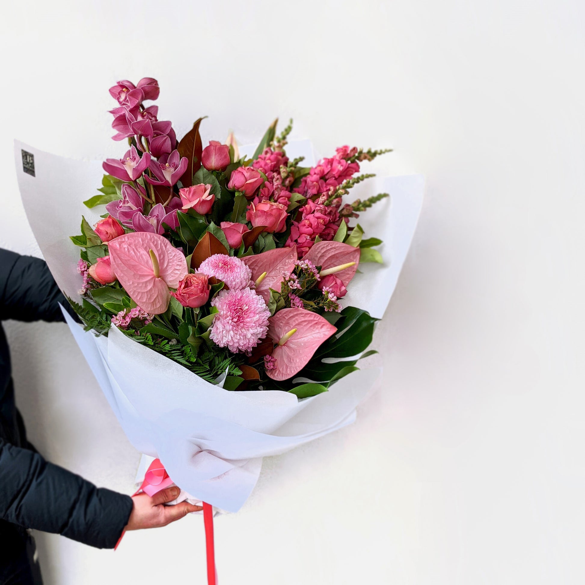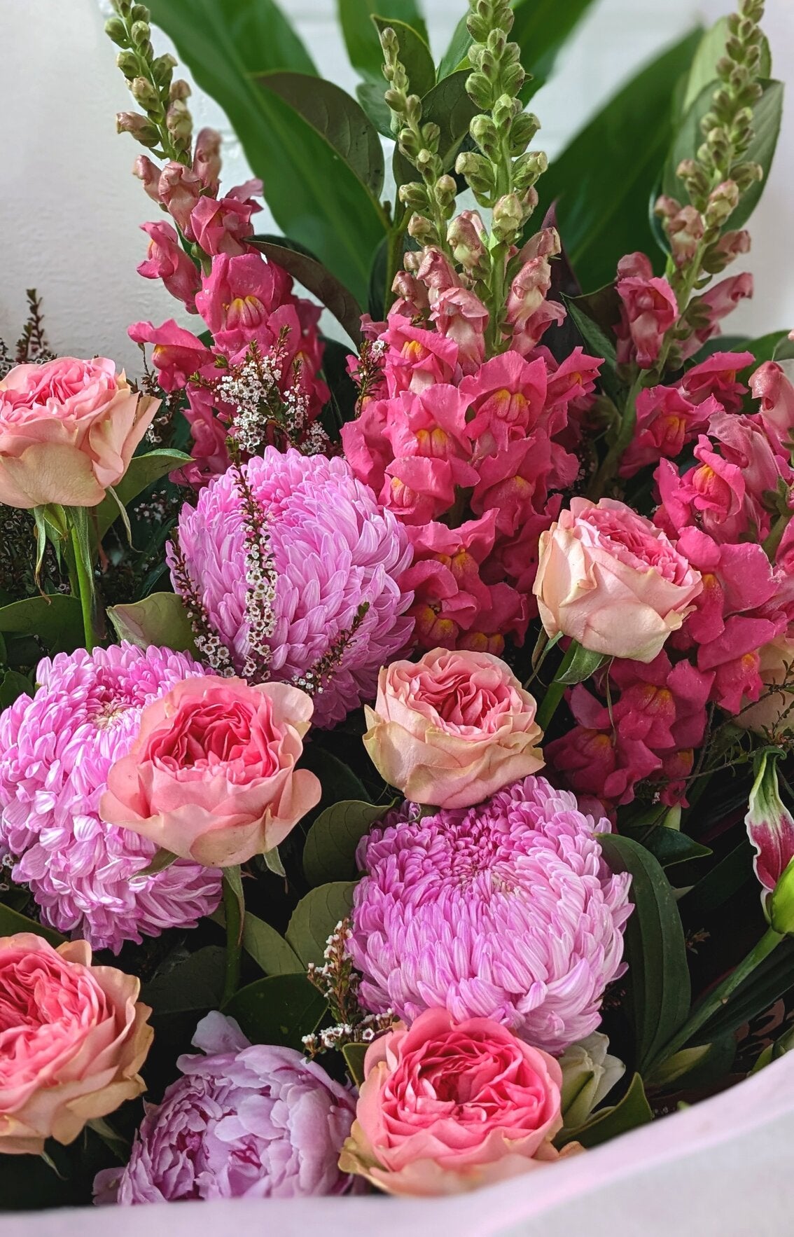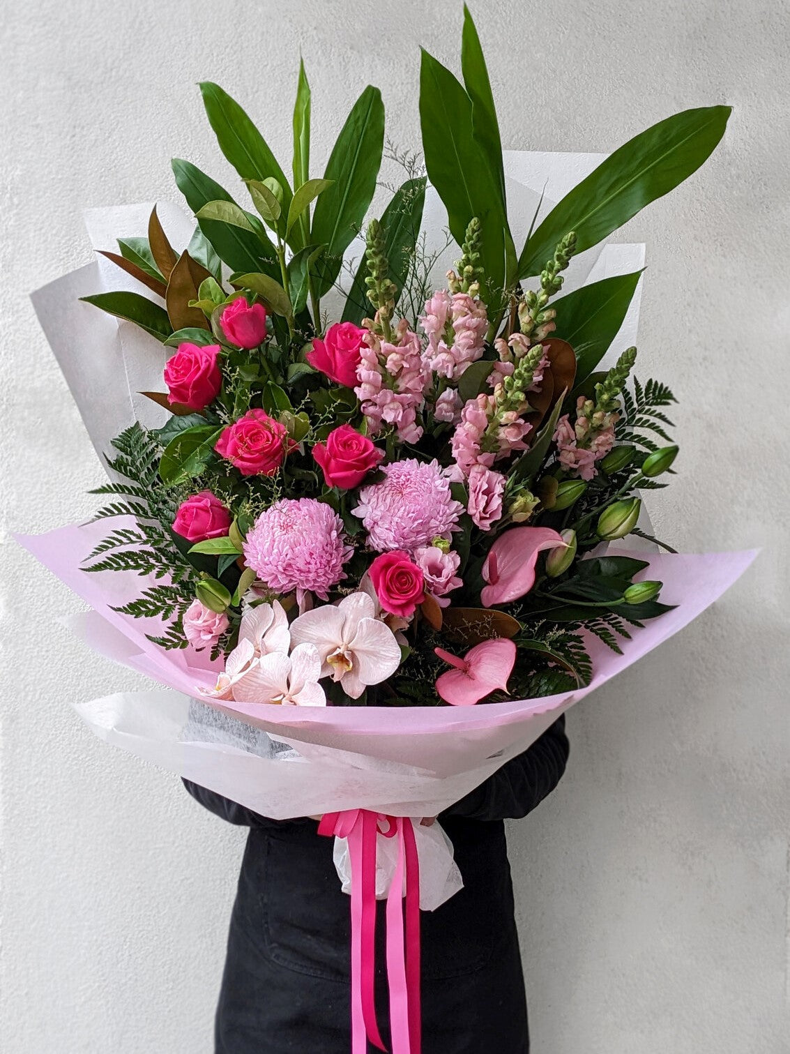 For the pink lover! A large front facing bouquet in shades of pink.